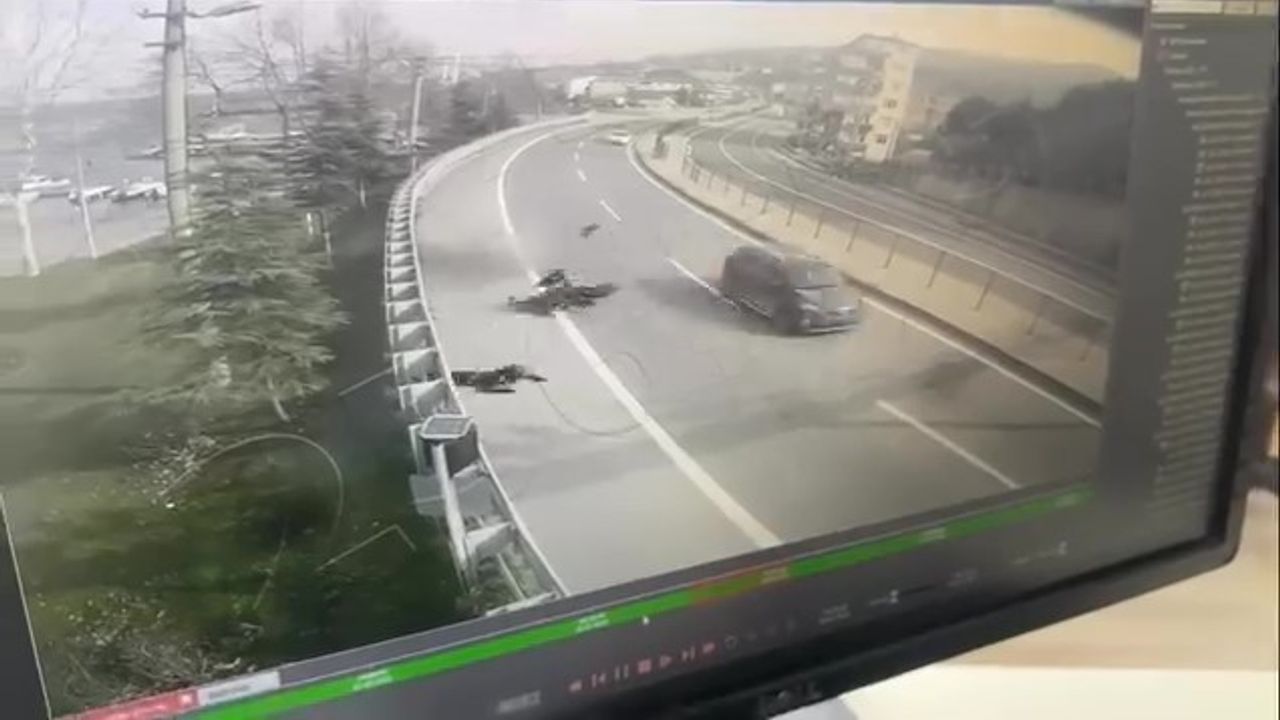 Kazaya ilişkin görüntü ortaya çıktı. Görüntülerde kaza anı ve motosikletlinin savrulma anları yer aldı.