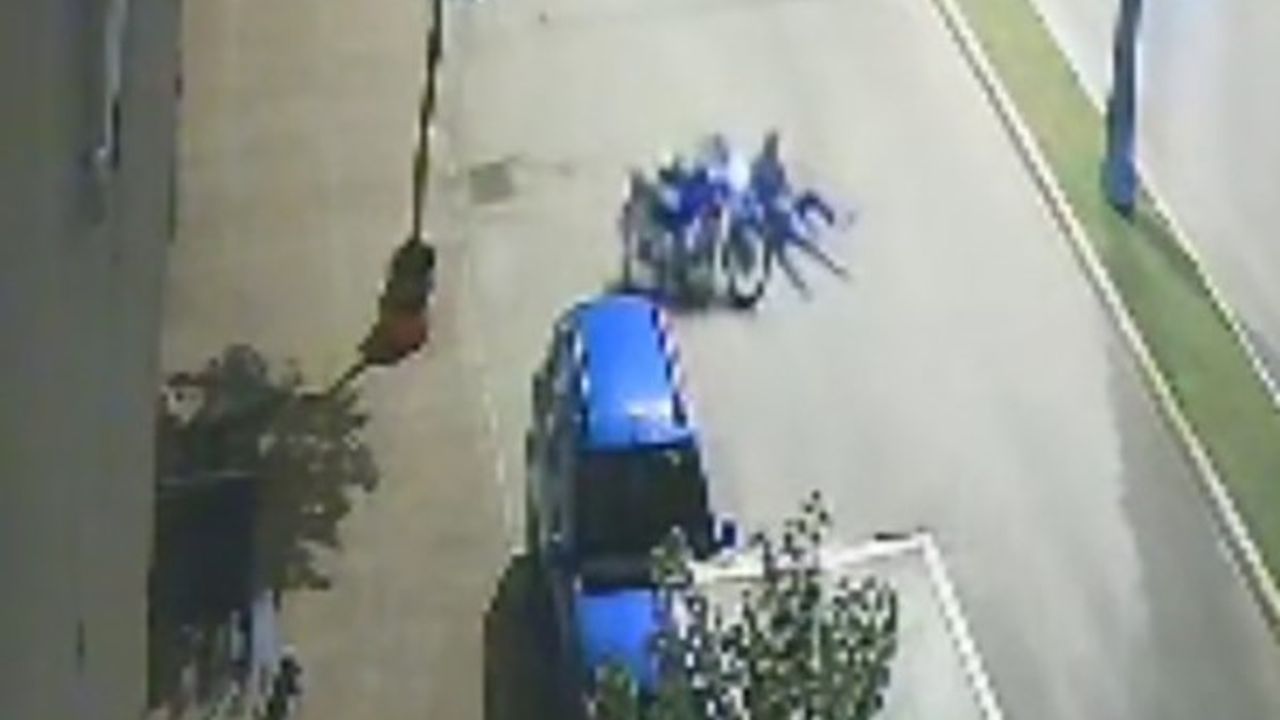 Virajı alamayıp devrilen motosiklet, park halindeki otomobile çarptı. Kazada yaralandığı tahmin edilen sürücü olay yerinden motosikletine binerek uzaklaştı. Otomobil sahibi durumu polise bildirdi. Motosikletin park halindeki araca çarpma anı güvenlik kamerasına yansıdı.
