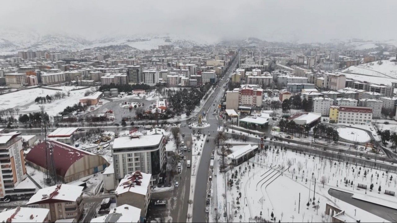 Karla kaplanan Sultan Alparslan’ın kenti Muş, havadan görüntülendi. O anlar izleyenleri hayran bıraktı.