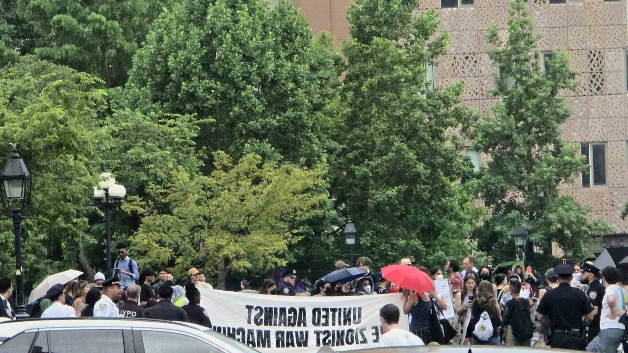 Protesto sırasında "Savaşa hayır", "Özgür Filistin, Özgür İran" ve "Soykırımı durdurun" yazılı pankartlar taşıyan göstericiler, Filistin halkına destek sloganları attı. Aynı alanda toplanan İsrail yanlısı bir grup da karşı gösteri düzenledi. New York Polis Departmanı (NYPD), iki grup arasında gerginlik yaşanmaması için parkta geniş güvenlik önlemleri aldı. Yetkililer, protestoların barışçıl şekilde sona erdiğini, herhangi bir olumsuzluk yaşanmadığını açıkladı.