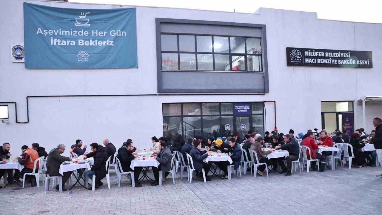 Nilüfer Belediyesi, aşevinde her gün 4 çeşit yemekten oluşan iftar menüsüyle 450 ila 500 kişiye iftar veriyor. Vatandaşlar da Ramazan ayının bereketini paylaşarak birlikte iftar yapmanın mutluluğunu yaşıyor.