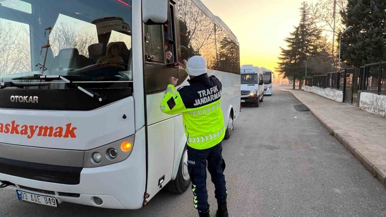 Bolvadin İlçe Jandarma Komutanlığı’na bağlı ekipler tarafından öğrenci taşıyan servis araçlarına yönelik denetim yapıldı. Denetimde 24 okul servisi aracı durdurularak kontrol edildi. Denetimde
