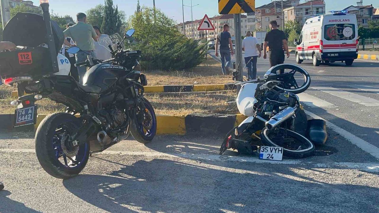 Bartın’da sürücüsünün direksiyon hakimiyetini kaybettiği motosiklet, önce otomobile sonra refüje çarptı. Kazada motosiklet sürücüsü yaralandı.