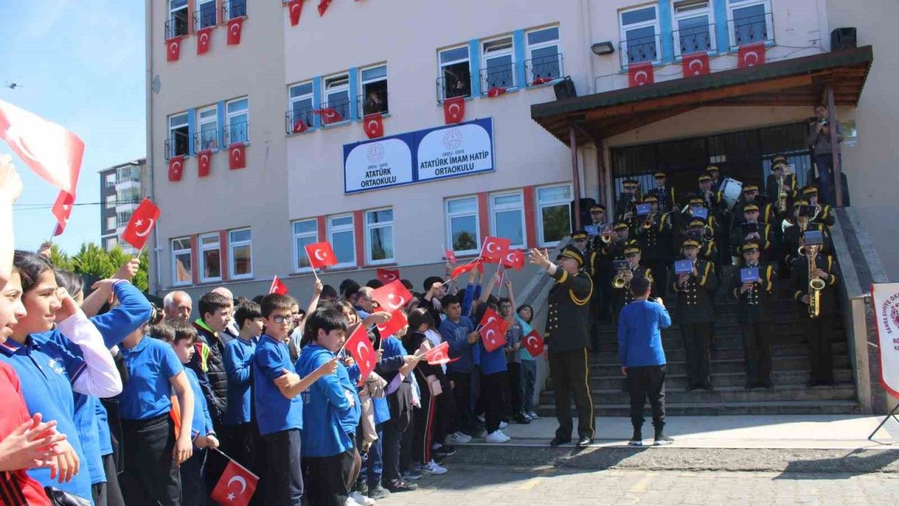 Milli Savunma Bakanlığı tarafından 23 Nisan Ulusal Egemenlik ve Çocuk Bayramı’nın 105. yılı dolayısıyla Türkiye ve Kuzey Kıbrıs’ta 105 bando konseri düzenleceği açıklandı. Konserlerden biri de Ünye Atatürk Ortaokulu’nda gerçekleştirildi. Bin 25 öğrenci, Sahra Sıhhiye Okulu ve Eğitim Merkezi Bölge Bando Komutanlığı ekibinin birbirinden güzel marşları ve ezgileriyle coştu. Ünye Kaymakamı Ayhan Işık, Ünye Belediye Başkan Vekili Orhan Gürel, Ünye İlçe Milli Eğitim Müdürü Murtaza Alan’ın da yer aldığı konserde öğrencilerin mutluluğu ise 23 Nisan ruhunu yeniden canlandırdı.