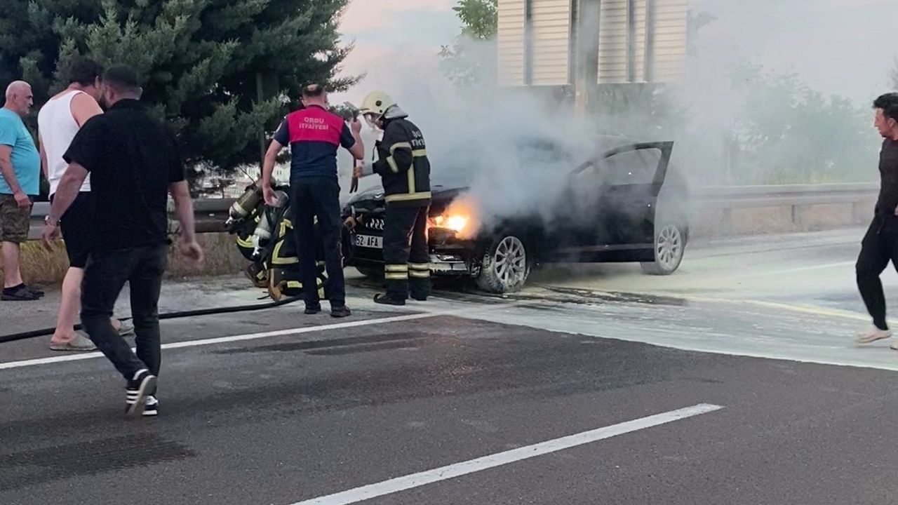 Ordu’nun Ünye ilçesinde seyir halindeyken motor kısmından alev alan otomobil, sürücünün dikkati ve itfaiyenin hızlı müdahalesiyle büyümeden söndürüldü. Yangında araçta maddi hasar meydana geldi.
