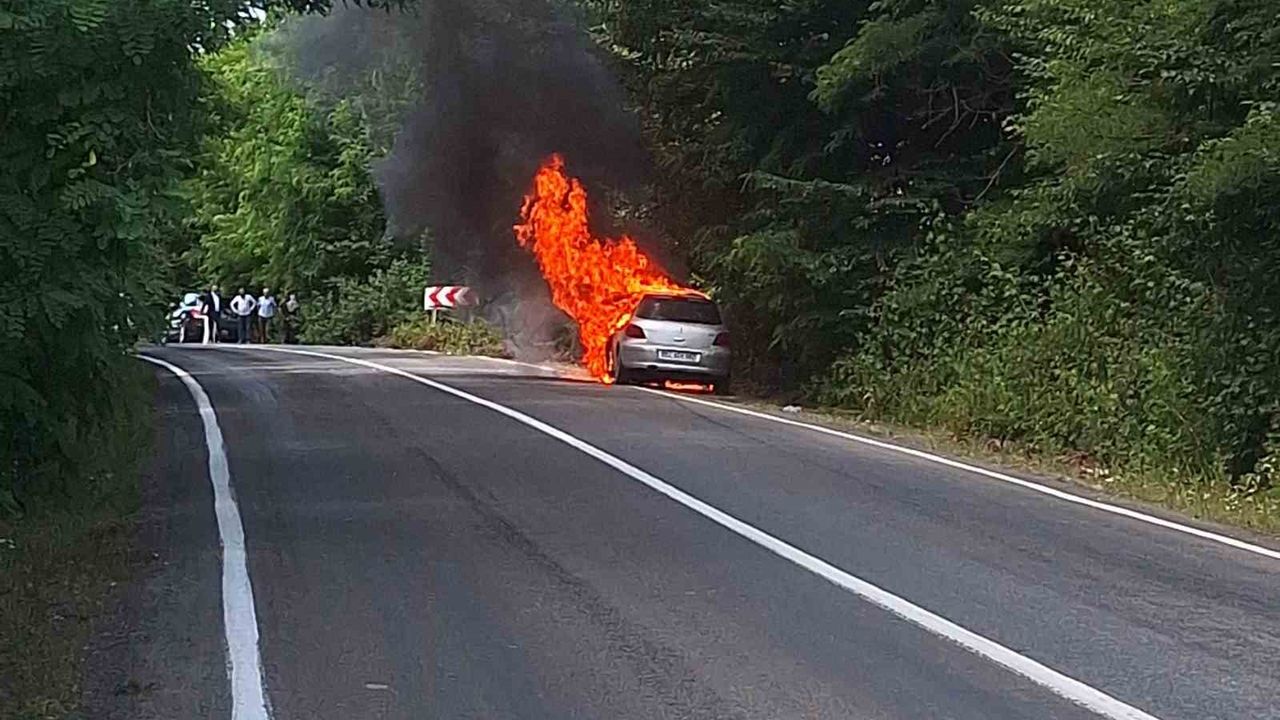 Ordu’nun Ünye ilçesinde çıkan yangın sonucu bir otomobil kullanılmaz hale geldi.