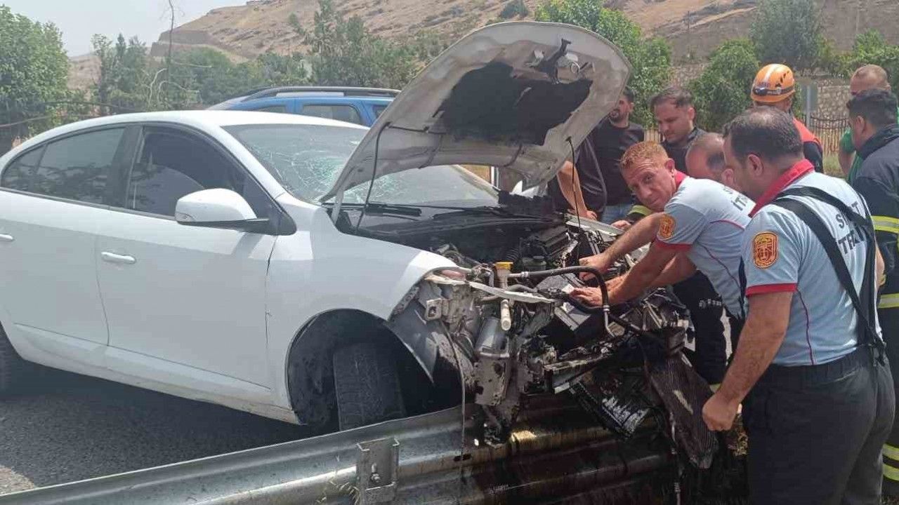 Siirt’te virajı alamayan sürücü, bariyerlere çarpması sonucu yaralandı.