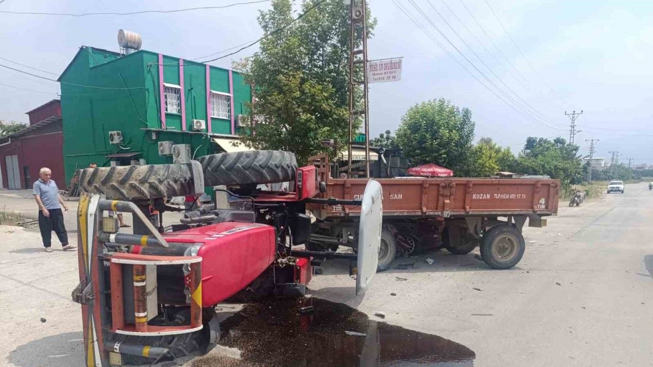 Adana’nın Kozan ilçesinde otomobille çarpışan traktör devrildi, 2 sürücü de yaralandı.