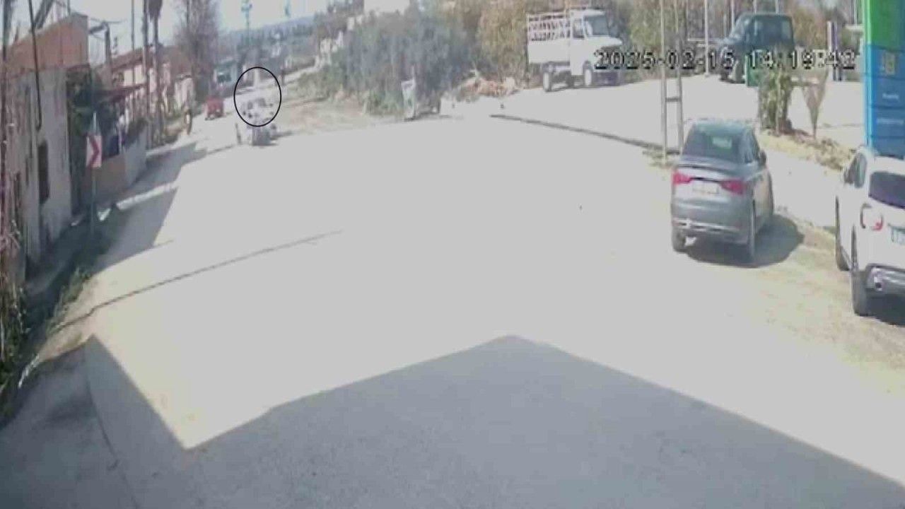 Hatay’da otomobille kafa kafaya çarpışan motosiklet sürücüsünün metrelerce havaya uçtuğu anlar kameraya yansıdı.