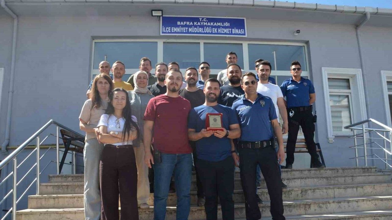 Samsun’un Bafra İlçe Emniyet Müdürlüğü Asayiş Büro Amirliği’nde 6 yıldır görev yapan ve Hakkari’ye tayini çıkan polis memuru Yunus Erken’e teşekkür plaketi verildi.