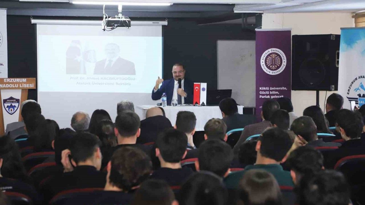 Atatürk Üniversitesi Rektörü Prof. Dr. Ahmet Hacımüftüoğlu, Erzurum Merkez Anadolu Lisesi ve Erzurum Merkez Anadolu Lisesi Mezunları Derneği tarafından düzenlenen Kariyer Söyleşisi programına konuk oldu. Bir müddet eğitim gördüğü okulda öğrencilerle bir araya gelen Rektör Hacımüftüoğlu, kariyer yolculuğunda edindiği tecrübeleri paylaştı.