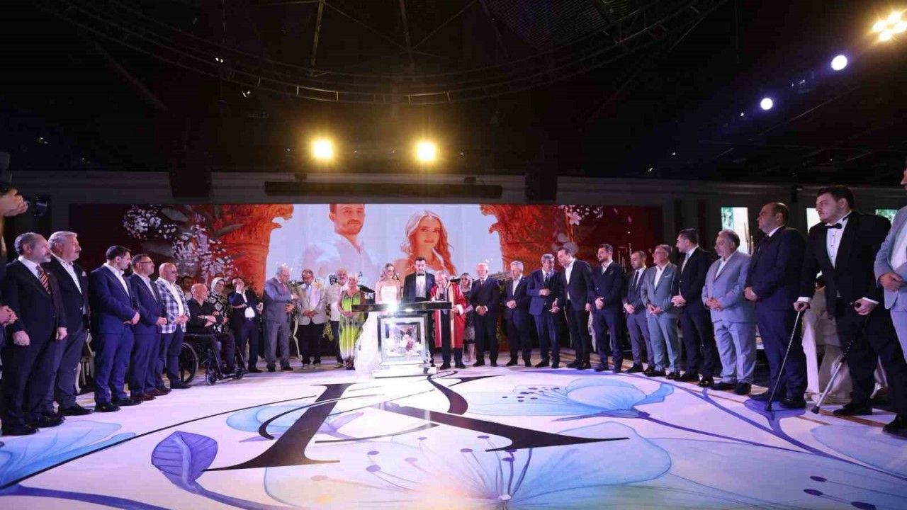 Düğüne katılan protokol üyeleri, genç çifte mutluluklar diledi.