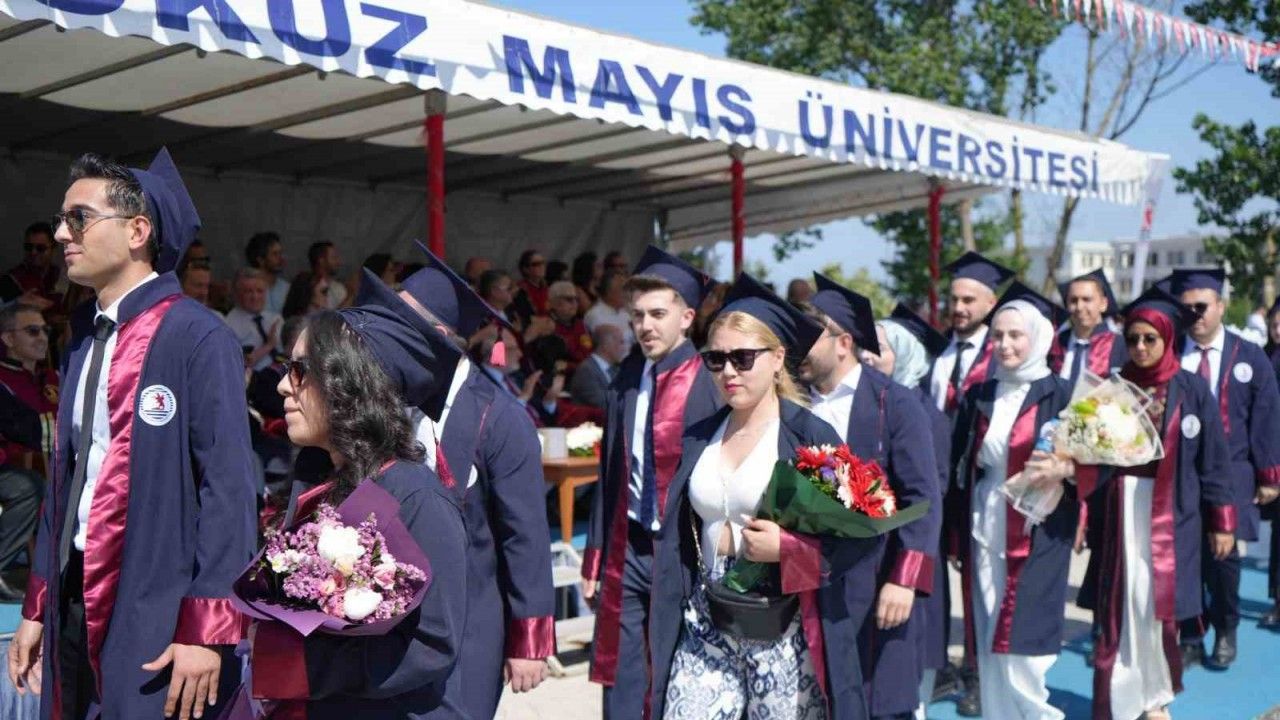OMÜ Tıp Fakültesi Mezuniyet Töreni, Yaşam Merkezi’nde yapıldı. Öğrencilerin geçişiyle başlayan tören, saygı duruşunda bulunulması ve İstiklal Marşı’nın okunması ile devam etti.