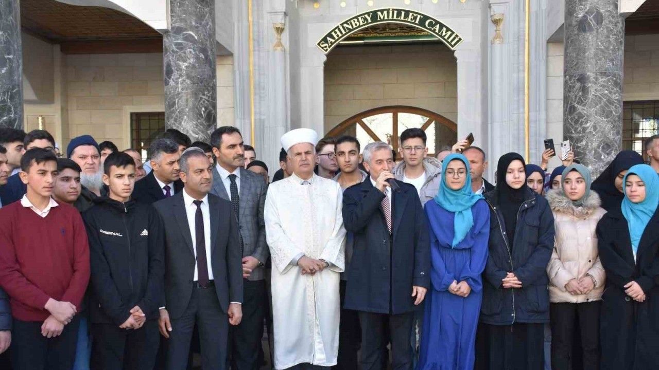 Gaziantep Valiliği, Şahinbey Belediyesi, İl Milli Eğitim Müdürlüğü ve Gaziantep İl Müftülüğü ile birlikte organize edilen proje kapsamında Umre Ödüllü Kitap Okuma Yarışması’nda 1’nci, 2’nci ve 3’ncü olan 177 öğrenci, Şahinbey Belediye Başkanı Mehmet Tahmazoğlu’nun katılımıyla Millet Camii’nde düzenlenen program ile Umre’ye yolcu edildi.