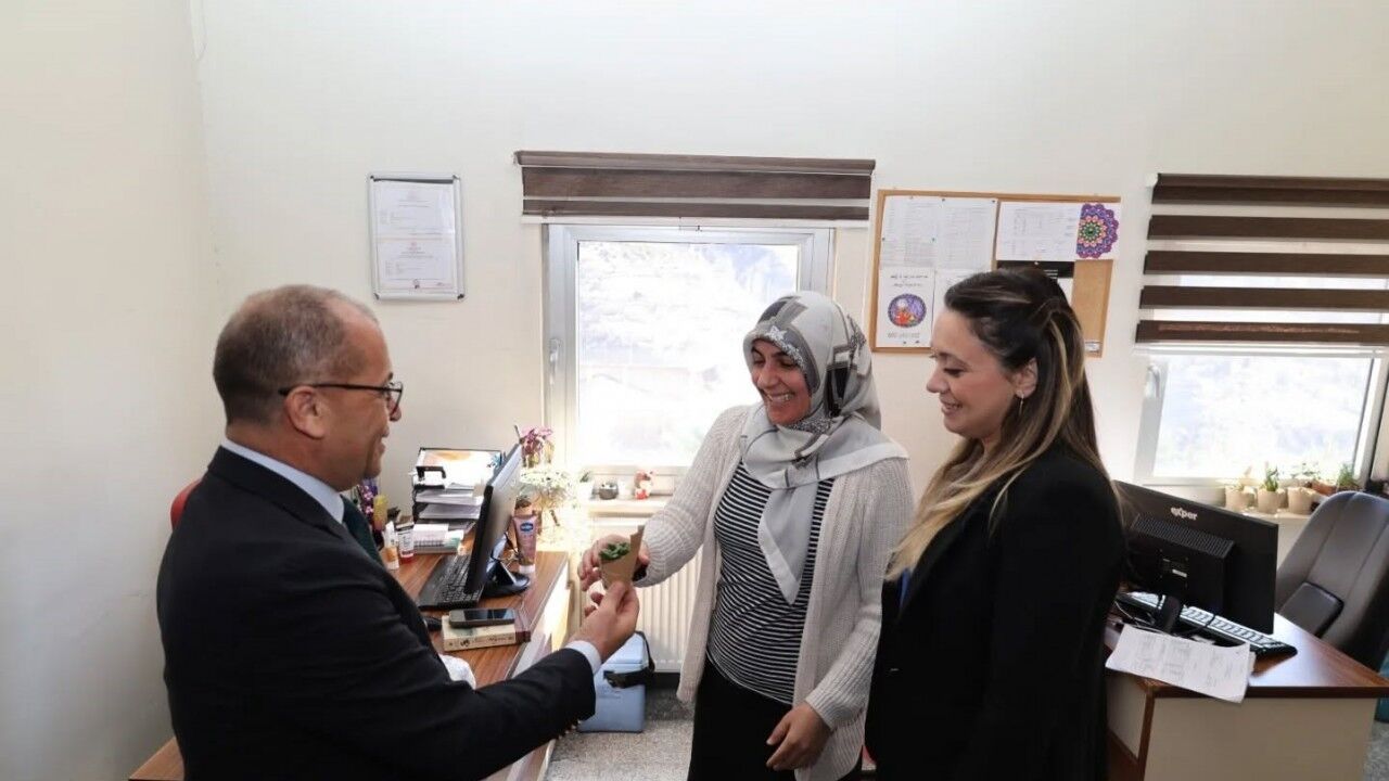 Saimbeyli Belediye Başkanı Mahmut Dal eşi Hülya Dal ile birlikte ilçede kamu ve esnaflar olmak üzere tüm kadın çalışanların yanında yer alarak hazırladıkları çiçekleri hediye etti.