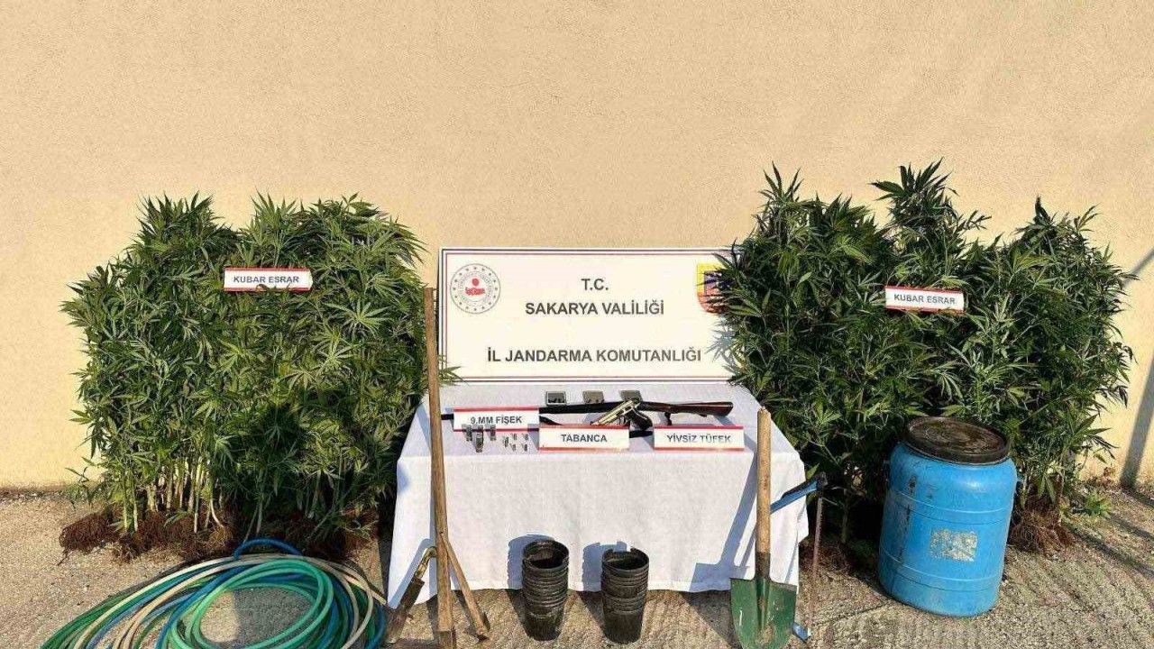 Sakarya İl Jandarma Komutanlığı ekipleri sorumluluk bölgesinde uyuşturucu ticaretinin önlenmesine yönelik çalışmalarına devam ediyor. Bu çerçevede Hendek ilçesi Çobanyatak Mahallesi’nde, C.E. (52) isimli şahsın evine ve eklentilerine yönelik yapılan aramalarda (147) kök kenevir bitkisi, 1 av tüfeği, 6 adet av tüfeği fişeği, 1 kurusıkı tabanca, 6 adet kurusıkı fişeği, 3 cep telefonu ile birlikte kenevir yetiştiriciliğinde kullanıldığı değerlendirilen 30 saksı, 2 çapa, 1 kürek, 1 bahçe bıçağı, 1 testere, 50 metre sulama hortumu ve 1 fıçı bidon ele geçirildi. Operasyonda yakalanan şahıs adli işlemlerinin ardından tutuklanarak cezaevine gönderildi.