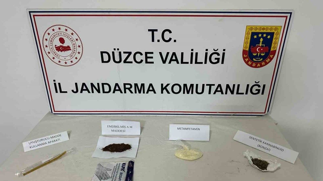 Düzce Cumhuriyet Başsavcılığı koordinesinde Jandarma ekipleri tarafından uyuşturucu ile mücadele sürüyor. Ekipler, E.S.(41) isimli şahsın uyuşturucu madde sattığı ve Sakarya’dan Düzce’ye uyuşturucu madde getireceği duyumu üzerine harekete geçti. Sakarya plakalı araç ekipler tarafından durdurulduğu sırada elinde bulunan çanta ile kaçmaya çalışan E.S. yere düşürdüğü çantayı vermemek ve kaçmak için görevli memurlara mukavemette bulunmasına rağmen yakalandı.