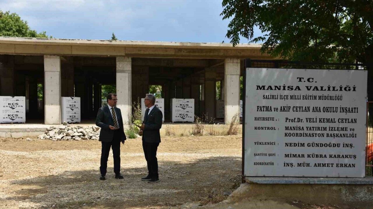 Manisa’nın Salihli ilçesinde Ticaret ve Sanayi İlköğretim Okulu Bahçesine ve Fahriye Hanım İlkokulu bahçesine hayırseverler tarafından anaokulu yapılıyor. İnşaatı devam eden anaokullarında Kaymakam Ali Güldoğan incelemelerde bulundu.