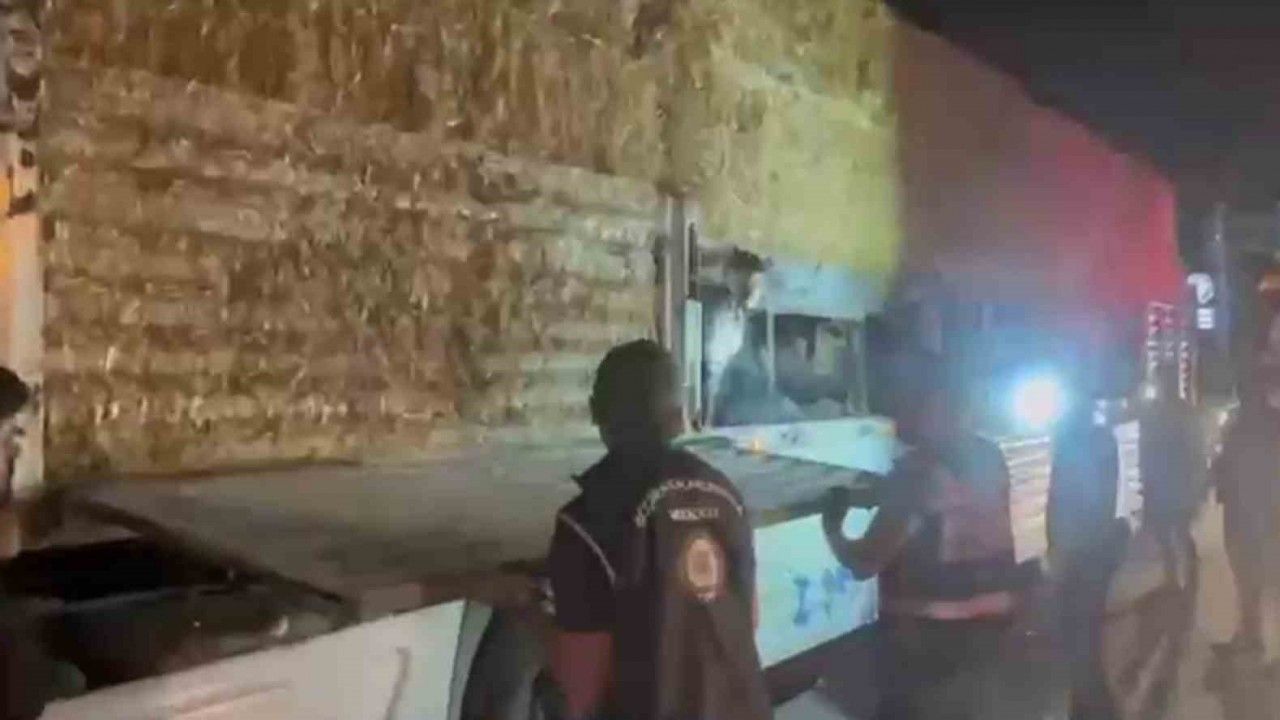 Hatay’da saman balyası yüklü tırda saklanan 31 kaçak göçmen yakalandı.