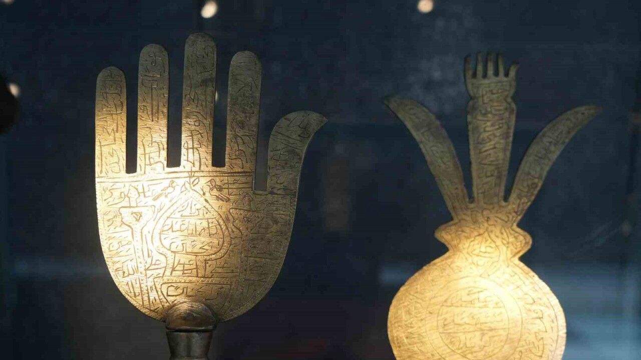 Aynı bölümde sergilenen ve pirinçten yapılmış olan "Fatma Ananın Eli" figürü ise, bereketin, gücün ve dayanıklılığın simgesi olarak öne çıkıyor. Ziyaretçilerin büyük ilgisini çeken bu eserler, geçmişte halk inançlarıyla şekillenen kültürel mirasa ışık tutuyor.