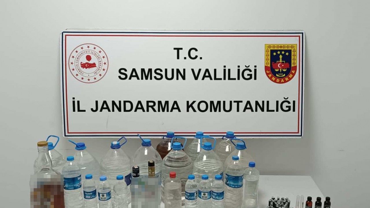 Samsun’da jandarma tarafından düzenlenen operasyonda 55 litre etil alkol ve 56 adet anason aroma kiti ele geçirildi.