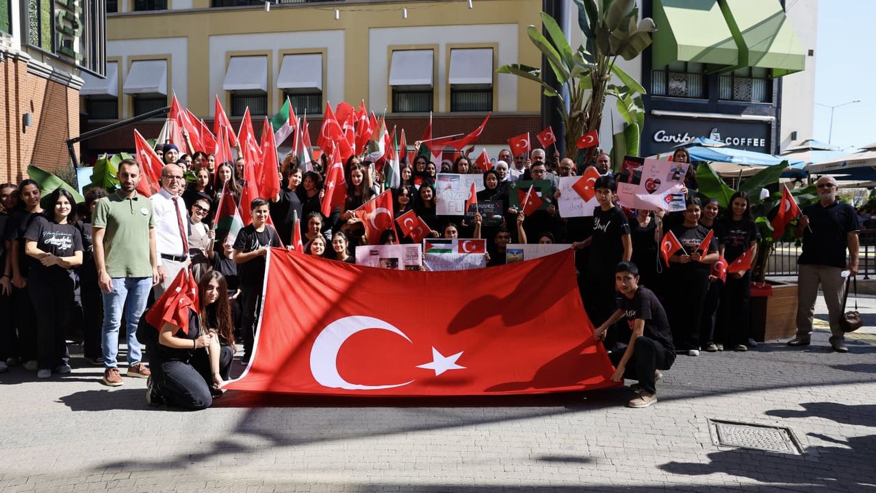 Durmuş, “Katil İsrail’in zulmüne karşı zafere yürüyen Gazzeli evlatlarımızın yanlarında olduğumuzu haykırmak için toplandık.” diyerek Filistin halkının yanında olduklarını vurguladı.