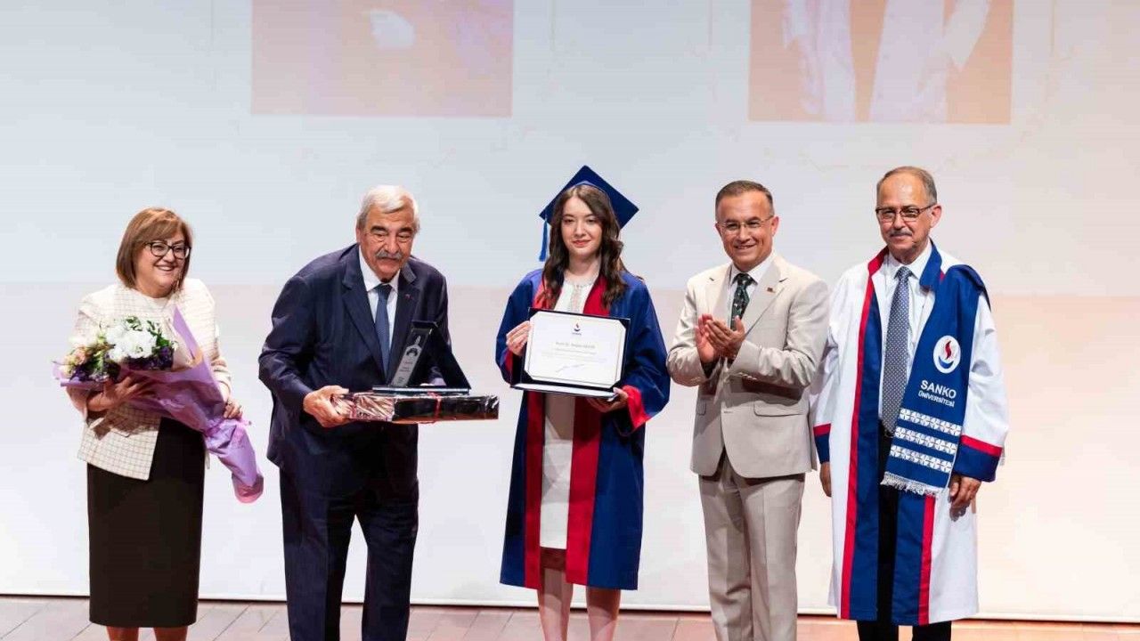 Tıp Fakültesini birincilikle tamamlayan Dr. Begüm Şeker’e Gaziantep Valisi Kemal Çeber, Gaziantep Büyükşehir Belediye Başkanı Fatma Şahin, SANKO Üniversitesi Mütevelli Heyeti Onursal Başkanı Abdulkadir Konukoğlu ile Rektör Güner Dağlı, ikincilikle mezun olan Dr. Ömer Faruk Doğruer’e SANKO Holding Yönetim Kurulu Başkanı Adil Sani Konukoğlu, SANKO Üniversitesi Rektör Yardımcısı Prof. Dr. M. Metin Bayram ve Genel Sekreteri Dr. Yusuf Ziya Yıldırım, dönem üçüncüsü Dr. Oğuzhan Çetin’e ise Tıp Fakültesi Dekanı Prof. Dr. Salih Murat Akkın ile Gaziantep/Kilis Tabip Odası Başkanı Dr. Kazım Eroğulları diploma ve armağan takdim etti.