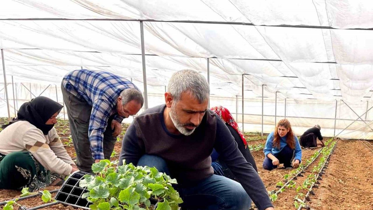 Şanlıurfa’da sebze fideleri, seralarda toprakla buluşturuldu.