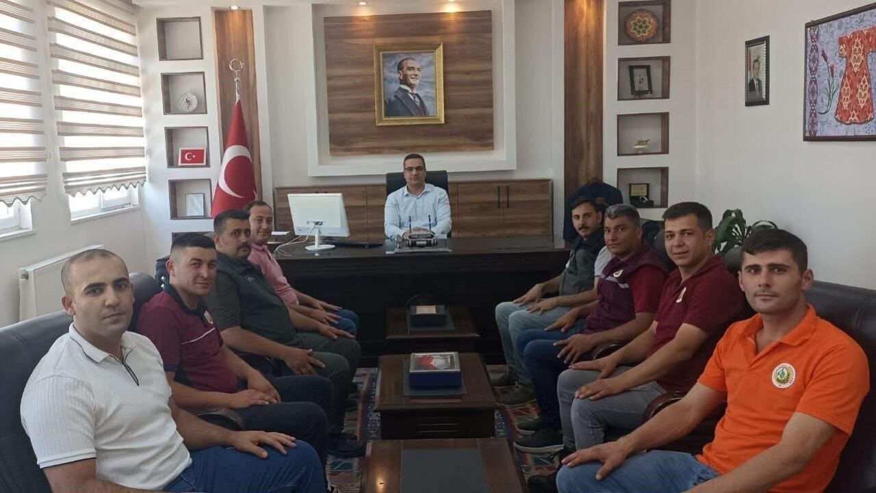 Sarıgöl Kaymakamı Halil Dalak, 2025 yılı Orman Yangınlarıyla Mücadele Eğitimi ve İş Başı Tatbikatı kapsamında düzenlenen 200 metre hortum açma yarışmasında birinci olan Sarıgöl Orman Yangın Ekibini makamında kabul ederek tebrik etti.