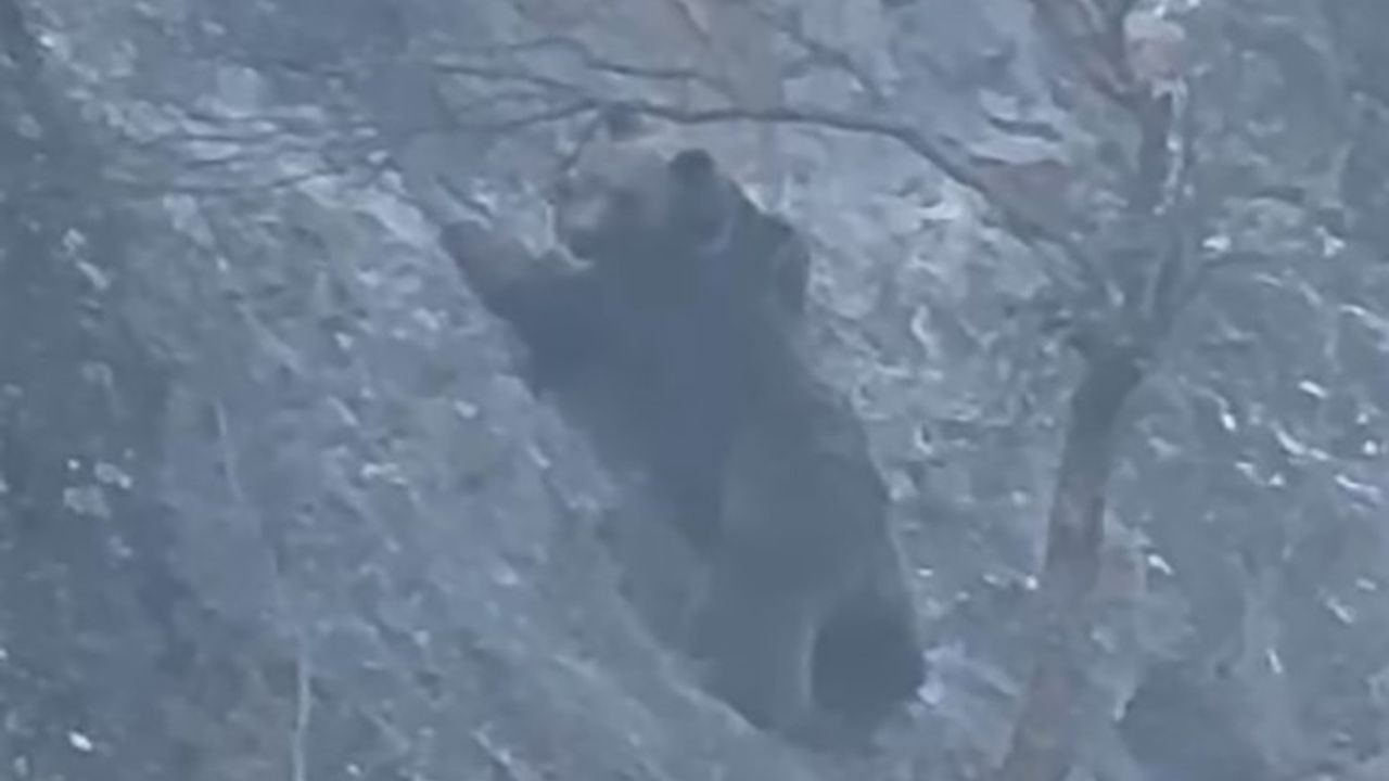 Tunceli’de avladığı yaban keçisi leşine ulaşmak için sarp kayalara tırmanan ayının o anları cep telefonu kamerasıyla kayıt altına alındı. Birkaç denemede başarısız olan ayı sonunda kayalara tırmanıp leşe ulaşmayı başardı.
