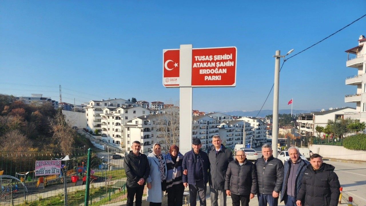 Ankara’da, Türk Uçak Sanayii Anonim Ortaklığı’na (TUSAŞ), 23 Ekim 2024 tarihinde, bölücü, hain terör örgütü PKK’lı teröristlerce yapılan kalleş saldırıda, yaralı olmasına rağmen teröristi vurarak faciayı önleyen, Kahraman Güvenlik Görevlisi Atakan Şahin Erdoğan’ın ismi, savunma sanayimize Gölcük Askeri Tersanesi ile güçlü destek veren, Gölcük Belediye Meclisi’nin aldığı kararla, İlhan Tuğba ve Anafartalar Caddesi kesişimindeki 10 dönümlük parkta verilmişti.