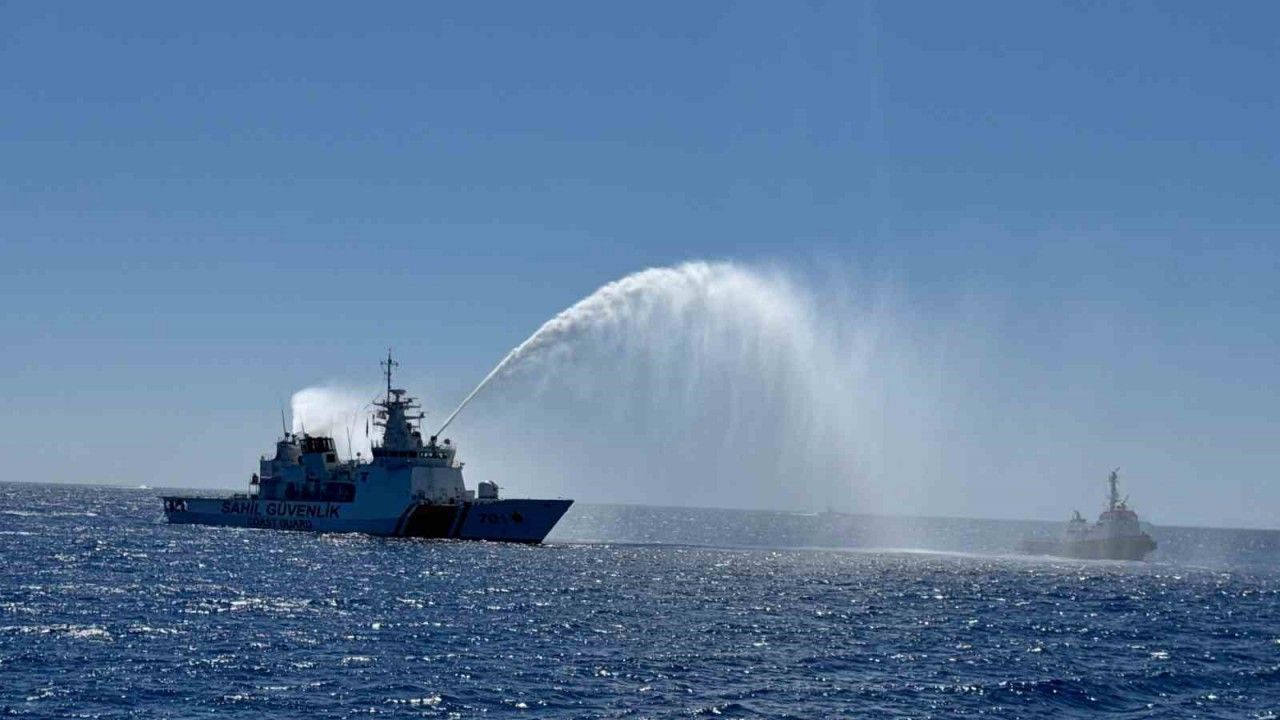 Arama kurtarma faaliyetlerinin tamamlanmasının ardından tatbikata katılan hava ve deniz araçları, TCSG Yaşam’ın önünde selamlama geçişi yaptı.