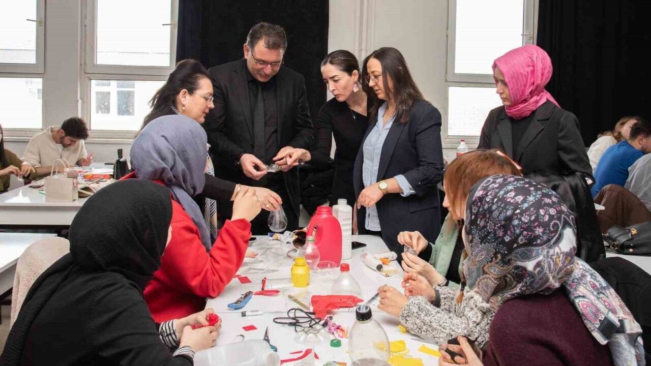 İç Mimarlık Bölümü Arş. Gör. Dr. Merve Varol Can’ın atölye yürütücülüğünde gerçekleşen "Sıfır Atık İleri Dönüşüm Atölyesi" kapsamında da tek kullanımlık plastik atıkların çevreye verdiği zarara dikkat çekmek ve sıfır atık bilincini yaygınlaştırmak amacıyla kampüsteki pet şişeler toplanarak yeniden değerlendirilmesi sağlandı.