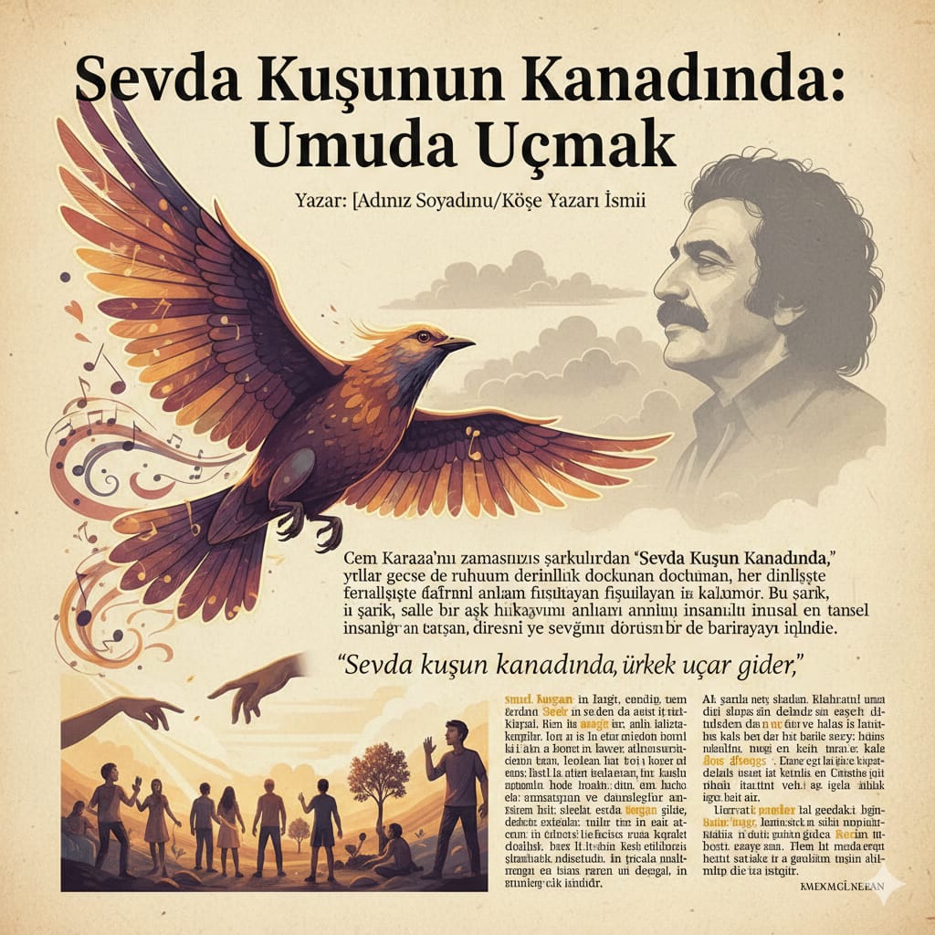Sevda kuşu kanatlarını çırparken bize adeta "Vazgeçme!" der. En karanlık gecenin ardından bile güneşin yeniden doğacağını fısıldar. Tıpkı Cem Karaca'nın o gür sesi gibi, biz de kendi içimizdeki gücü keşfetmeli ve zorluklara meydan okumalıyız.