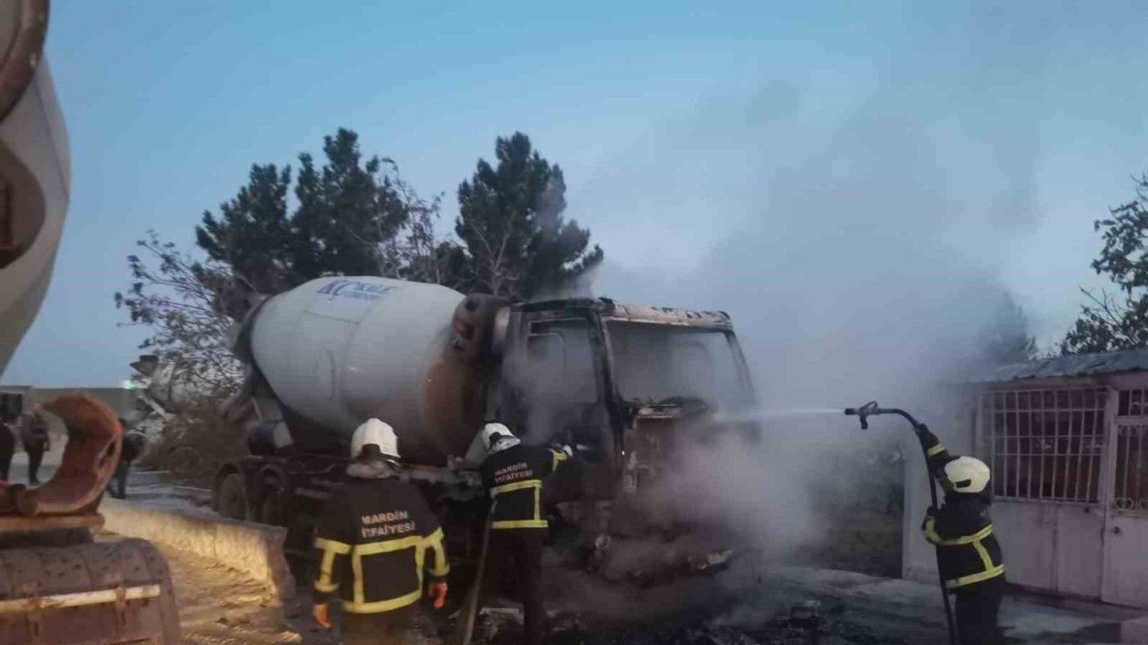 Mardin’in Artuklu ilçesinde seyir halindeki beton mikseri alev alev yandı.