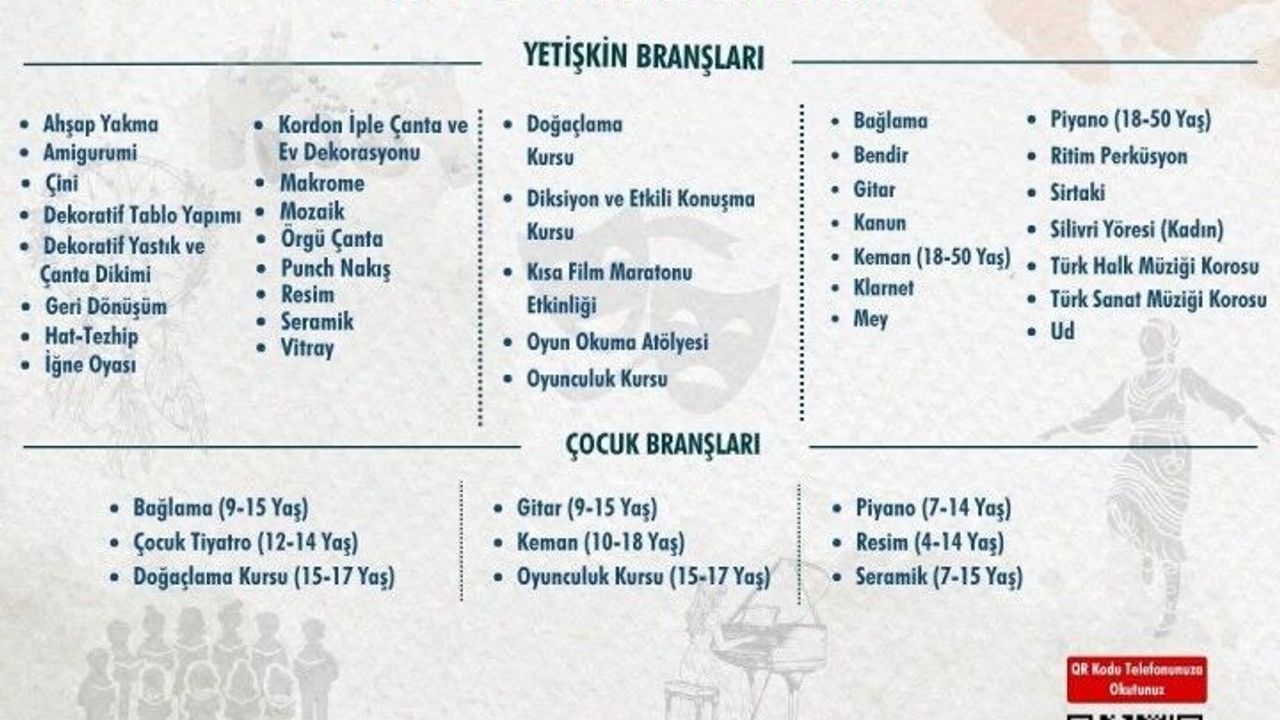 Silivri Belediyesi Kültür ve Sosyal İşler Müdürlüğü tarafından organize edilen Kültür Merkezi Yaz Dönemi Kursları için kayıt süreci başladı. Kurslar, her yaş grubuna hitap edecek şekilde planlanırken; sanat, müzik, sahne sanatları ve el işleri gibi birçok alanda katılımcılara eğitim fırsatları sunulacak. Yetişkinler için ahşap yakma, seramik, diksiyon, piyano, halk müziği, resim, drama, örgü çanta, dekoratif tablo yapımı, cam füzyon gibi ilgi alanlarına göre kurslar açılacak. Çocuklar ise bağlama, piyano, gitar, seramik, doğaçlama ve tiyatro gibi branşlarda kendilerini geliştirme şansı bulacak.