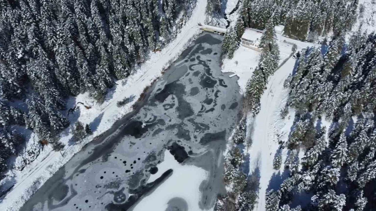 Sinop’un Ayancık ilçesinde Akgöl Tabiat Parkı’nda bulunan Akgöl’ün yüzeyi buzla kaplandı.