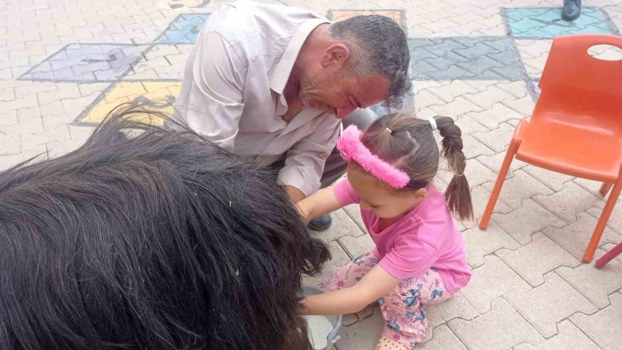 Etkinlik kapsamında okul bahçesine getirilen kıl keçisiyle öğrencilere süt sağımı uygulamalı olarak anlatıldı. Görevliler eşliğinde bazı öğrenciler keçi sağmayı deneyimledi.