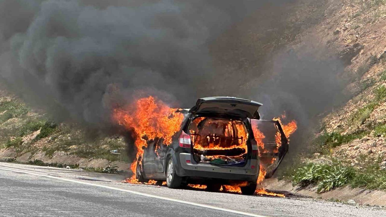 Sivas’ta seyir halindeyken alev alan otomobil kullanılamaz hale geldi. Araçta bulunan 4 kişi son anda kurtuldu.
