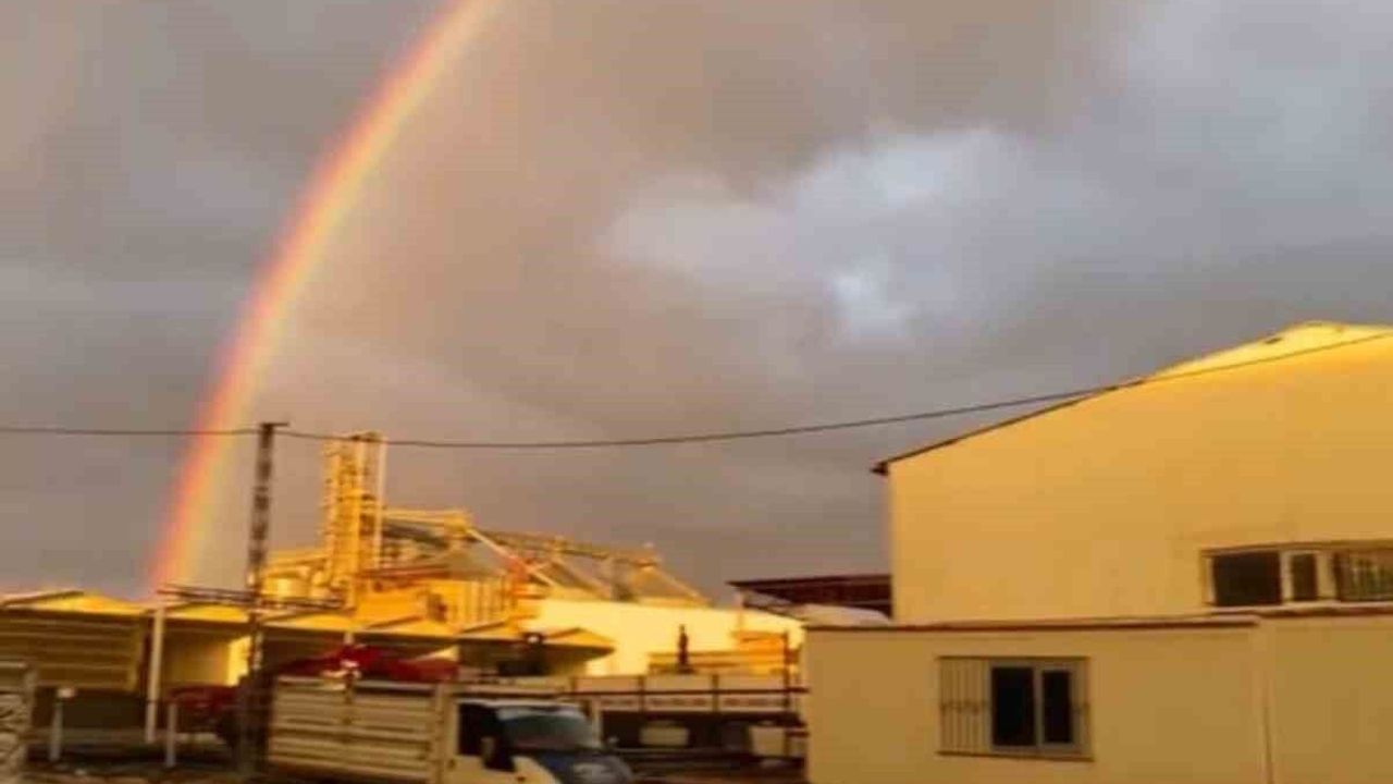 Şanlıurfa'nın Siverek ilçesinde sağanak yağışın ardından ortaya çıkan gökkuşağı eşsiz manzara oluşturdu.