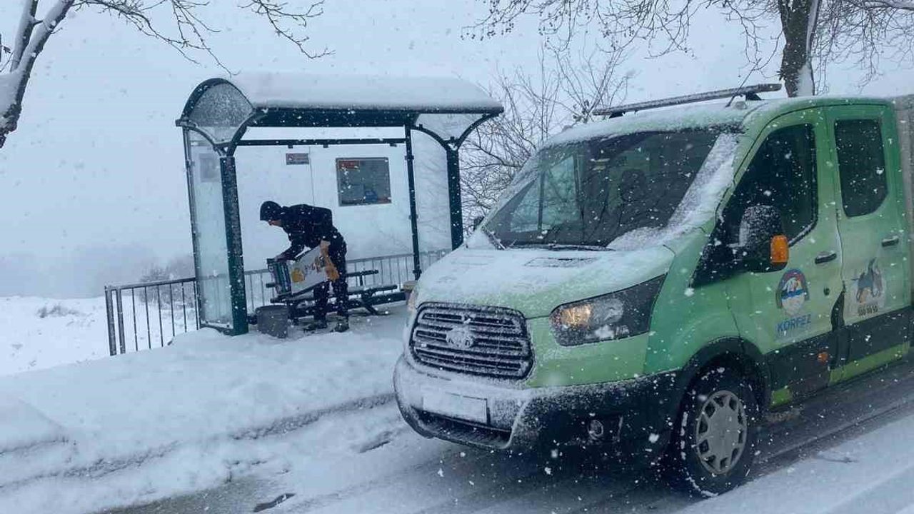 Körfez Belediyesi ekipleri, kar yağışı ve soğuk havanın etkisini artırmasıyla birlikte sokak hayvanları için kent genelinde beslenme noktaları oluşturdu.