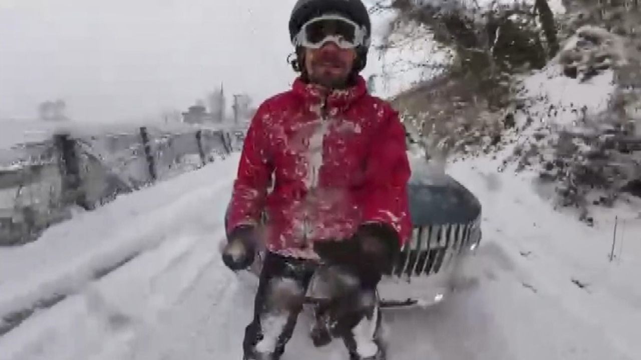Bölgenin zorlu coğrafyasındaki virajlı yollara rağmen başarıyla kayak yapan Sarı, o anları kayıt altına aldı. Sosyal medyada paylaşılan görüntüler büyük beğeni topladı.