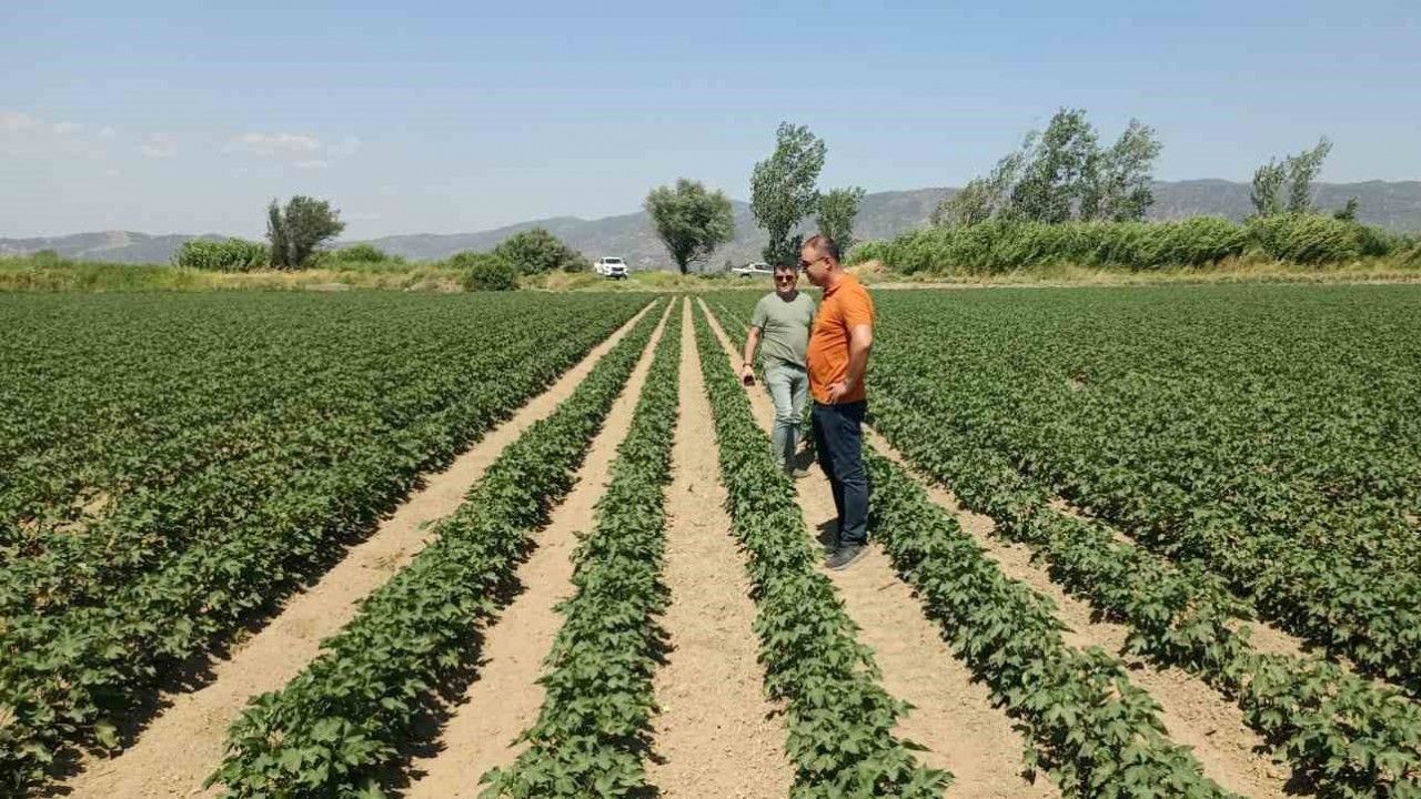 Aydın’ın Söke ilçesinde tarım alanlarında yürütülen denetim ve inceleme çalışmaları sürerken, pamuk ve ayçiçeği tarlalar incelendi.