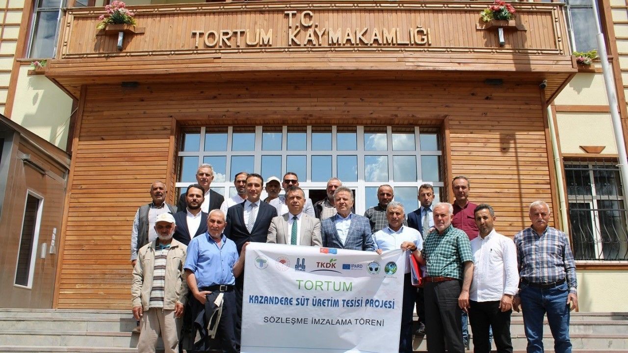 Erzurum’un Tortum İlçesi Kazandere mahallesinde kurulacak olan süt üretim tesisi sözleşmesi törenle imzalandı.