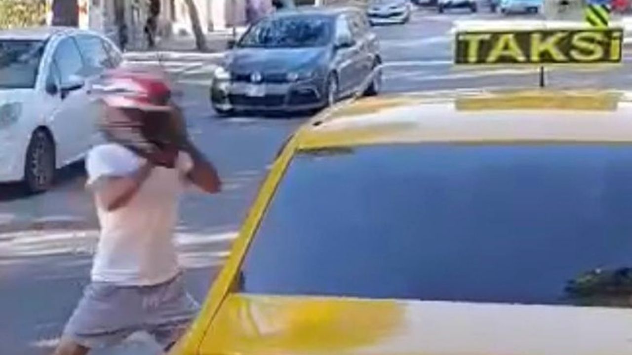 İzmir’in Bornova ilçesinde motosikletli, trafikte tartıştığı taksi şoförüne kaskla saldırdı. Şoförün yumruklarla karşılık verdiği kavga, vatandaşların araya girmesiyle son bulurken yaşanan anlar ise kameralara yansıdı.