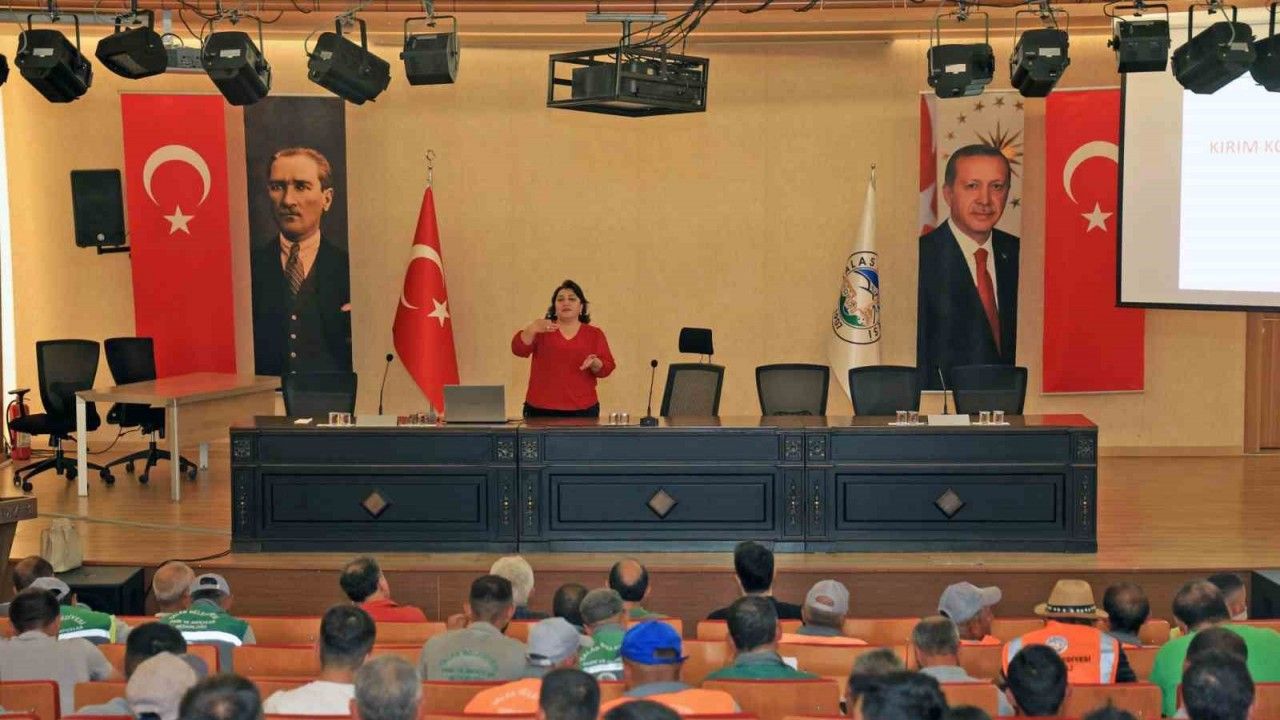 Meclis Salonu’ndaki eğitimlerin ilk oturumu Temizlik İşleri Müdürlüğü ile Park ve Bahçeler Müdürlüğü personelinin katılımıyla gerçekleştirildi. Eğitimde, KKKA hastalığına karşı alınması gereken önlemler ve sağlıklı yaşam alışkanlıkları detaylı şekilde ele alındı. Programda eğitimciler Dide Demir ve Neriman Atasever bilgi ve deneyimlerini paylaştı. Düzenlenen eğitime Talas İlçe Sağlık Müdürü Dr. İsmail Kılıç da katılarak hastalıkla mücadelede farkındalığın önemine dikkat çekerken, Talas Belediyesini temsilen Başkan Yardımcısı Etem Mezgitli de hazır bulundu. Toplam altı bölüm halinde planlanan eğitimlerin diğer personelle devam edecek. Temmuz ayı boyunca sürecek olan diğer dört eğitim programıyla da tüm belediye personeline ulaşılması hedefleniyor.