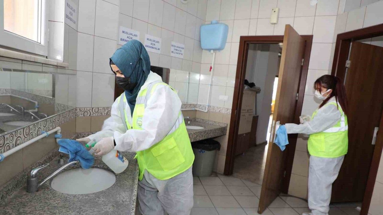 Talas genelindeki 59 eğitim kurumunun tamamı için kolları sıvayan Talas Belediyesi ekipleri, okullarda hijyen çalışması gerçekleştiriyor. İki ekip halinde yürütülen çalışmalarda bahçeler başta olmak üzere kazan daireleri de dahil edilerek lavabolar, tuvaletler, kapılar, koridorlar ve sınıflar ile okulun her noktası temizlenip dezenfekte ediliyor.