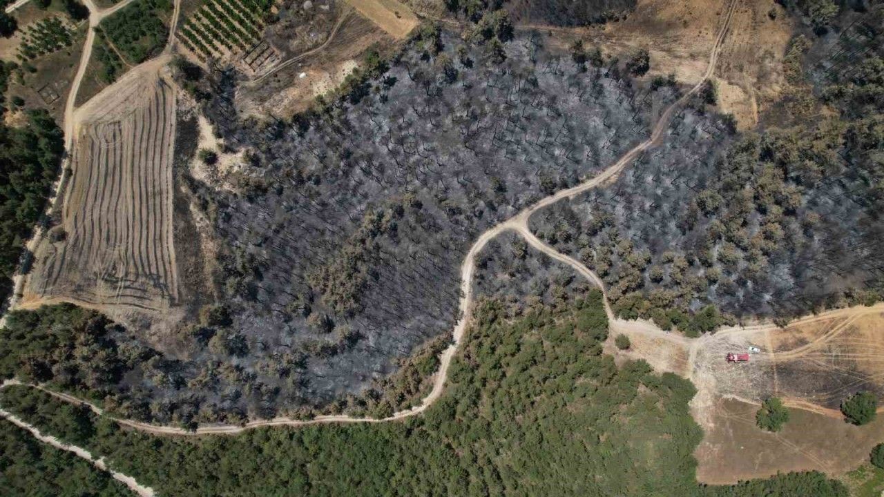 Yüzlerce hektarlık alanı küle çeviren yangının izleri, uydudan çekilen görüntülerle de gözler önüne serildi. Yangından etkilenen tahmini alanların afet haritasındaki izleri, yangının yıkıcı boyutunu net bir şekilde ortaya koydu. Beşinci gününe giren yangında, orman ekosisteminin büyük yara aldığı görüldü. Bölgede hem tarım alanları hem de yaban hayatı zarar gördü. 5’inci gün itibarıyla bölgede soğutma çalışmaları sürerken, yanan alanlarda tahribat netleşmeye başladı. Yangının küle çevirdiği alanlar dron ile havadan da görüntülendi.