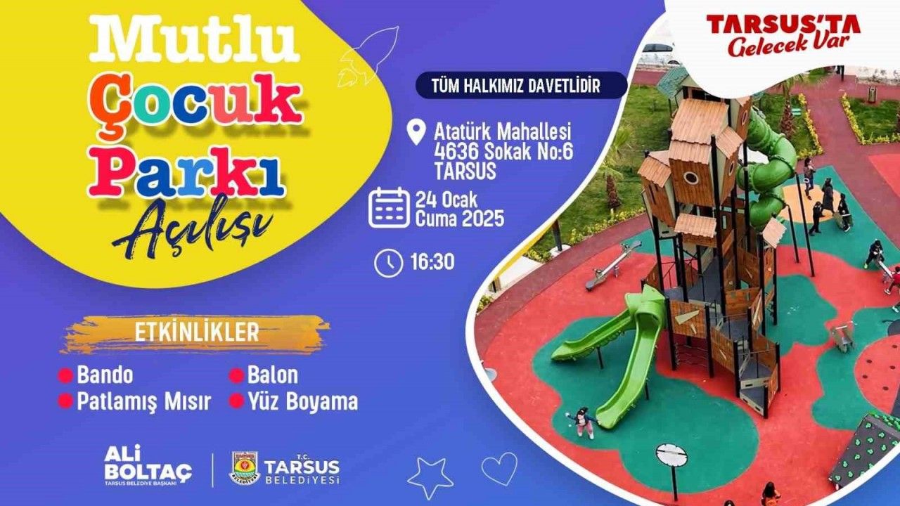 Tarsus Belediyesinin yapımını tamamladığı Mutlu Çocuk Parkı hizmete açılacak. Modern tasarımı, çocuklar için güvenli oyun alanları, aileler için sosyal donatılar ve geniş yeşil alana sahip park, bölgeye değer katacak.