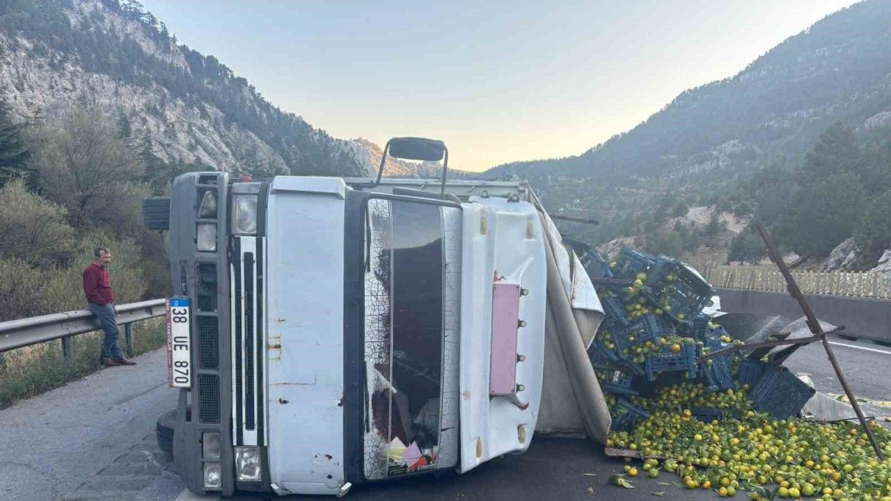 Alınan bilgiye göre, sürücüsünün kimliği öğrenilemeyen 38 UE 870 plakalı narenciye yüklü kamyon otoyolda Tarsus istikametinden Pozantı istikametine seyir halindeyken Aspava mevkiinde yola devrildi. Ölen ya da yaralananın olmadığı kaza sonrası trafik tek şeritten verildi.